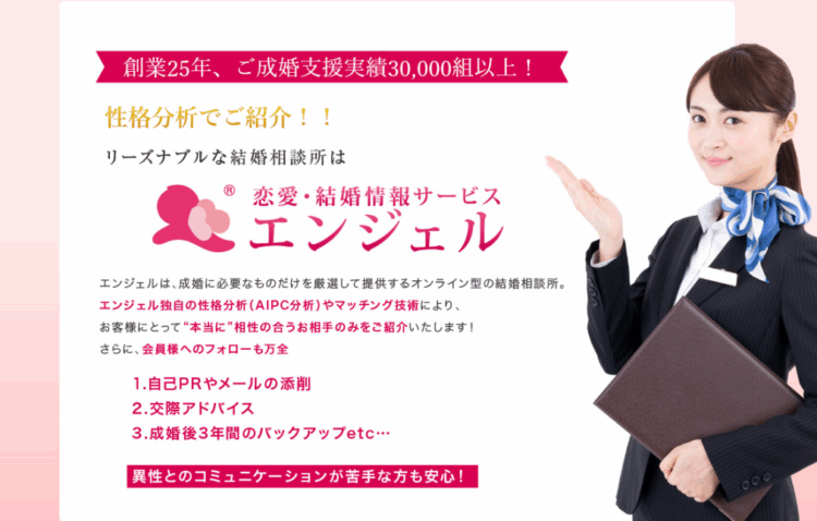 エンジェルは「性格の合う人と結ばれる」ことにこだわったオンライン婚活サービスです。