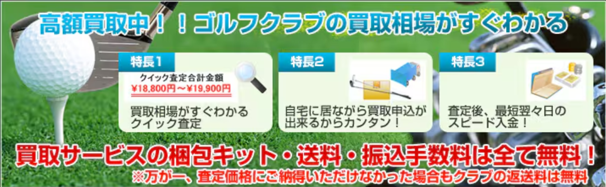 宅配買取の常識を超えた、簡単・安心・高価買取。使わないクラブをお金に変えて、次のゴルフライフをさらに充実させましょう。