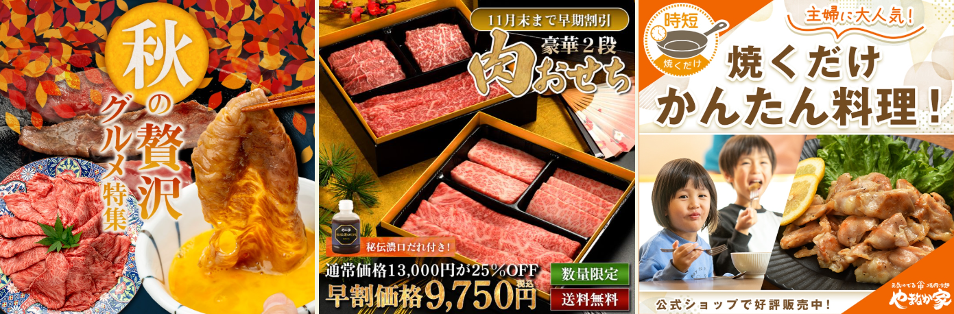 大切な家族の食卓を、特別な日のご馳走に、そして日々の自分へのご褒美に。やまなか家の逸品が、あなたの食卓を豊かに彩ります。
