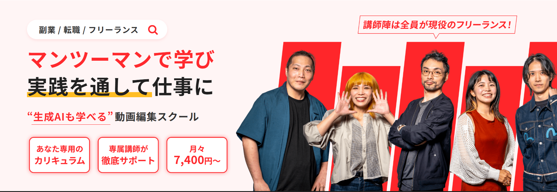 デジハクは、未経験からでも動画編集スキルを実践的に学べるオンラインスクールです。自分のペースで学習し、質問やフィードバックを受けながらスキルアップできる環境が整っています。